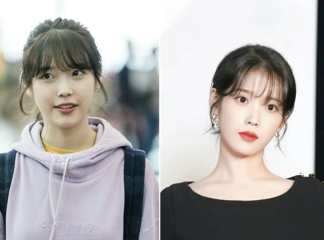 轻薄刘海+碎发修饰脸型因为古早审美影响,IU之前的刘海会比较厚重,看起来清纯有余气场不足,小五官更是直接被吞没。
