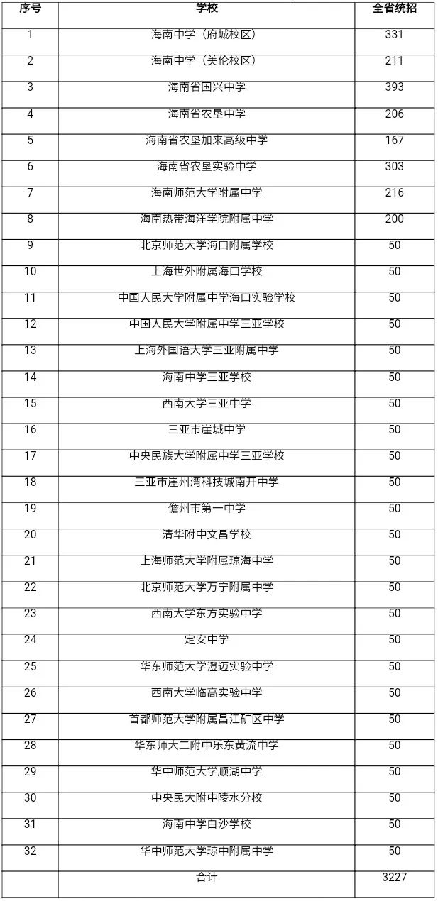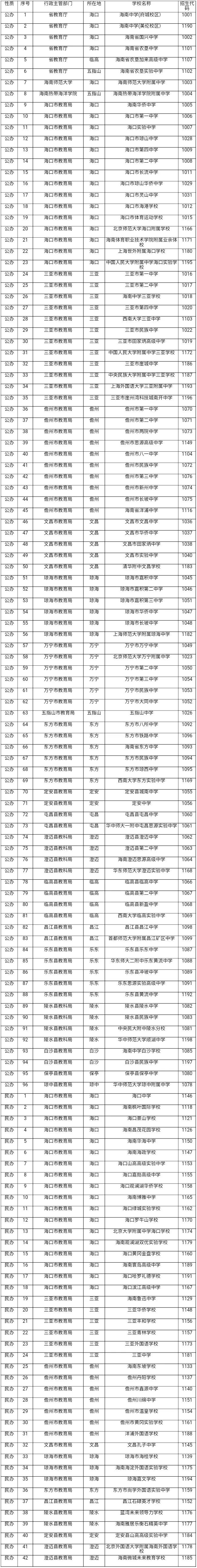 2.海南中学(府城校区)第一批次B段面向全省招生,不再分配到各市县。
