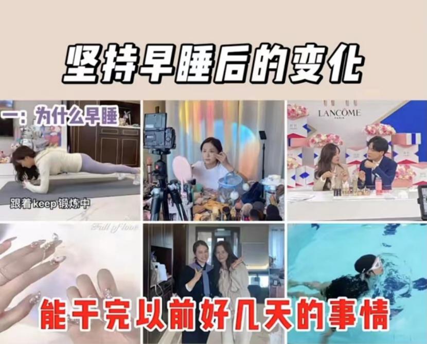 每天晚上十点半睡觉,早上7点起床,醒来后先健身,再开始一天的视频拍摄工作。