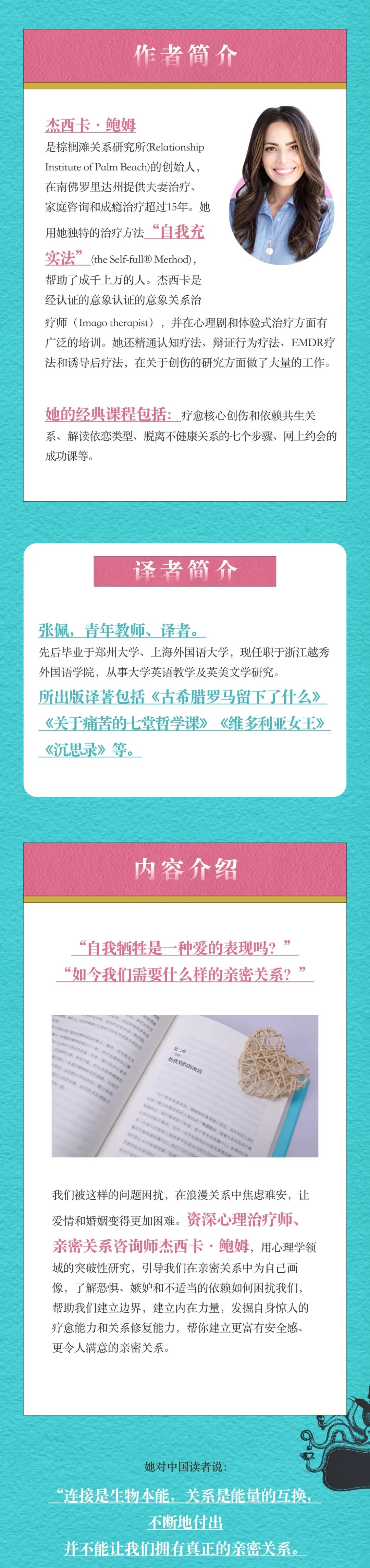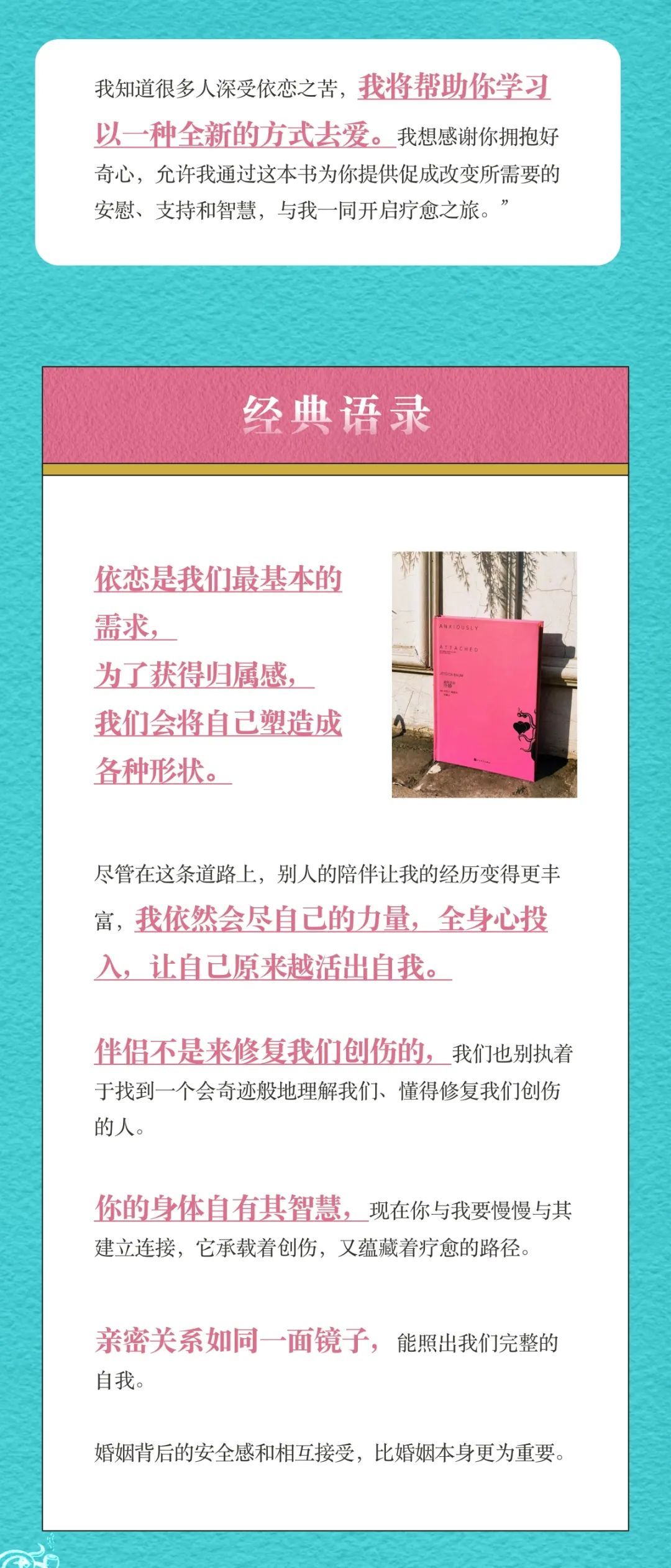 要知道,我们越是善于保持自己的界限,就越能够尊重他人对空间的需求。就像是如果我们邀请一个我们刚认识的人到家里做客,不让他离开,这个人会被吓到一样;如果这个人拖着行李箱上门,宣布他要搬过来时,我们一样会感到痛苦。当焦虑型人士认为她们刚喜欢上的人是“真命天子”,开始竭尽所能将这个人留在身边时,可能就是这样的感觉。当你明白自己也需要空间时,才会明白每个人都需要空间,伴侣时不时需要与你分开,开始去感觉这没那么像抛弃,而更像一个健康的休整期,以便他或她补充能量、重建自我意识。