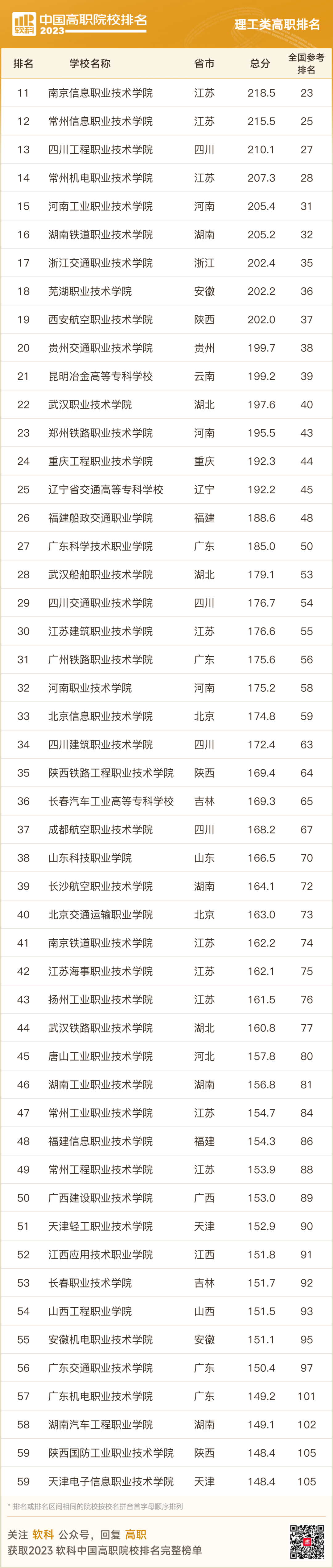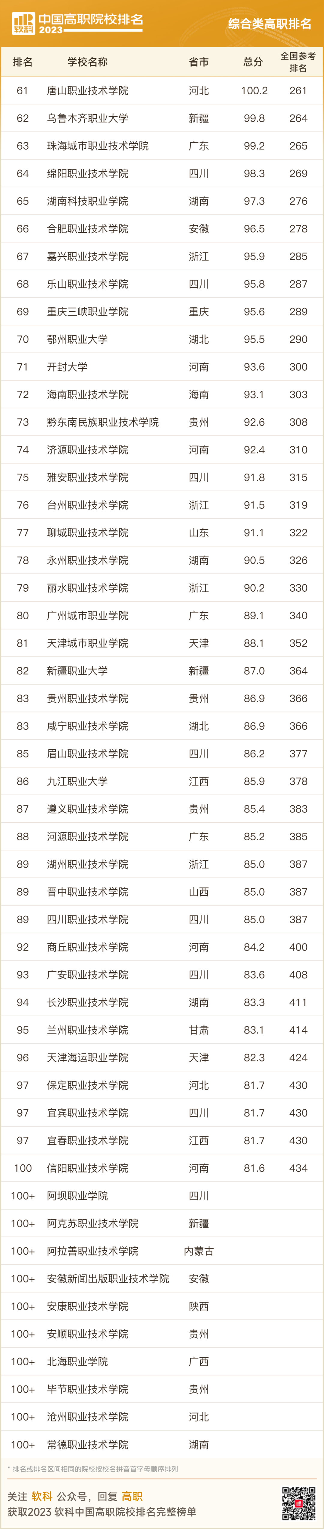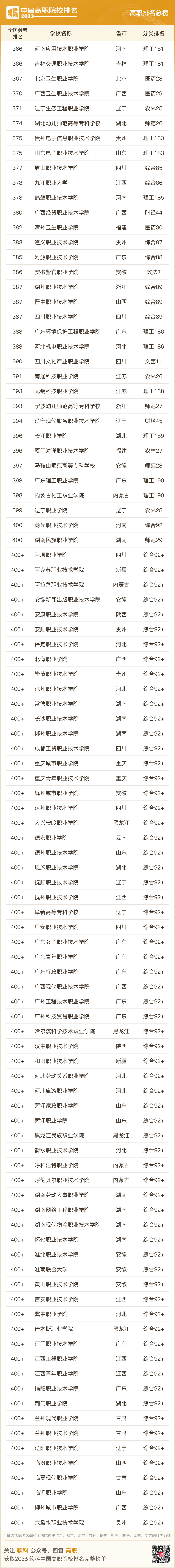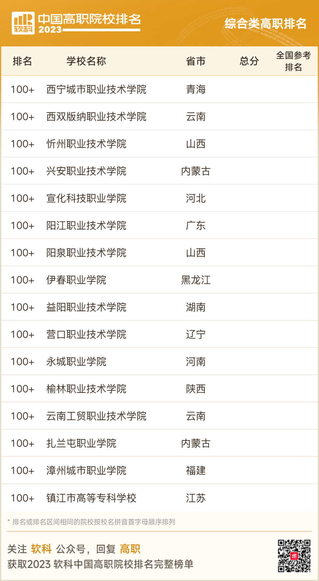 (2023年7月3日)高等教育专业评价机构软科正式发布“2023软科中国高职院校排名”。