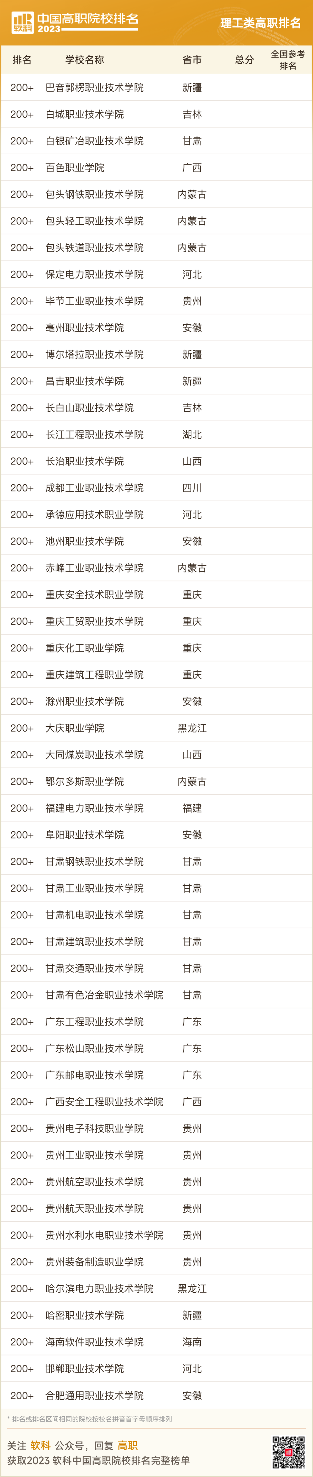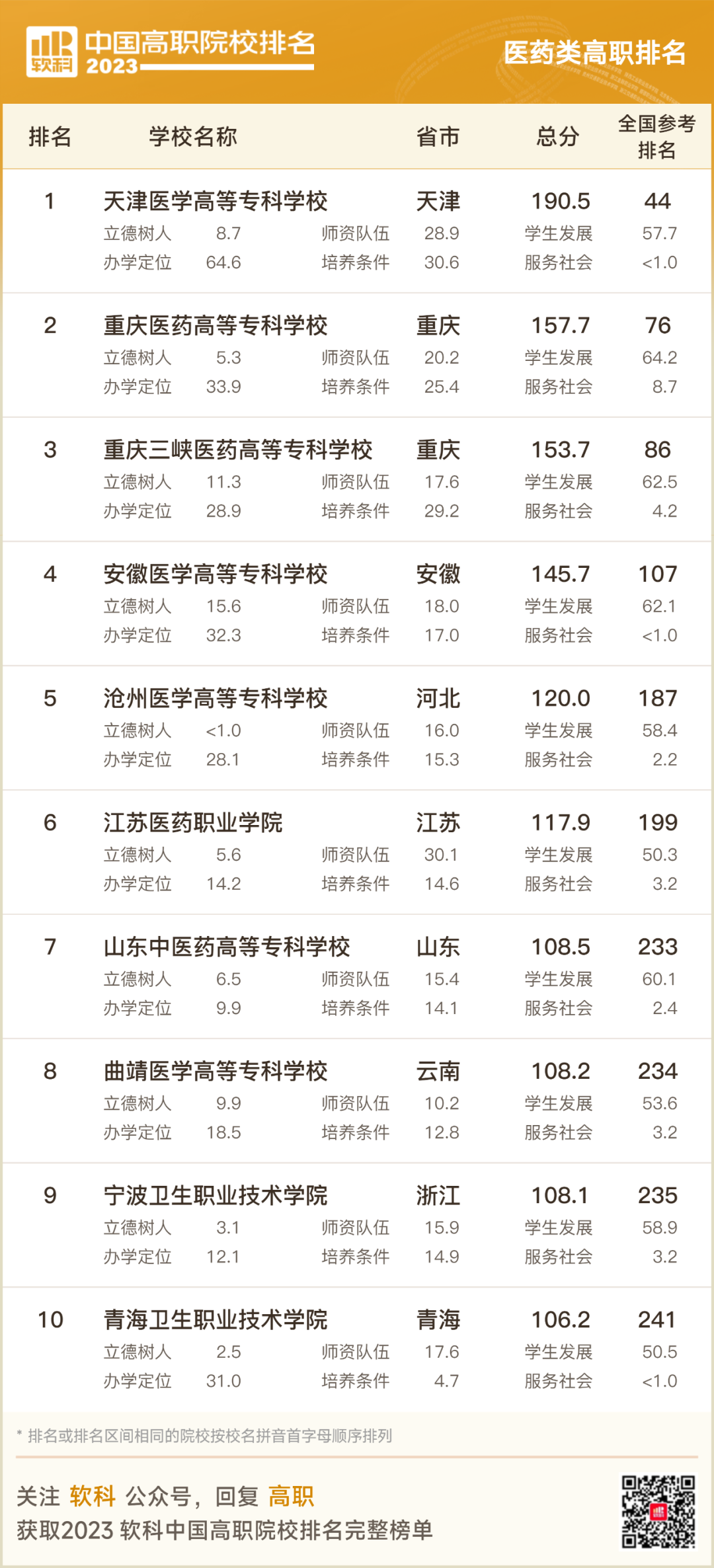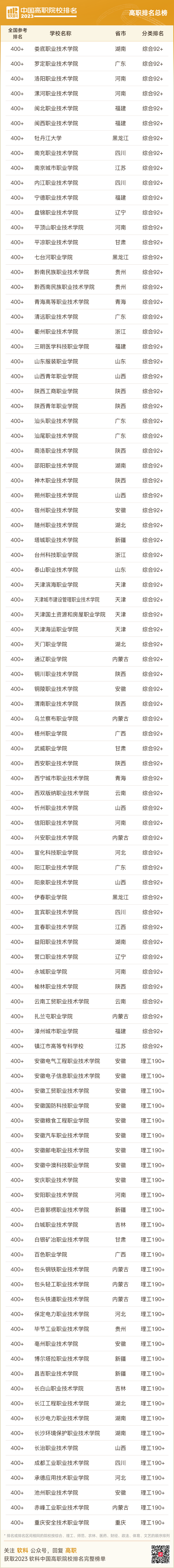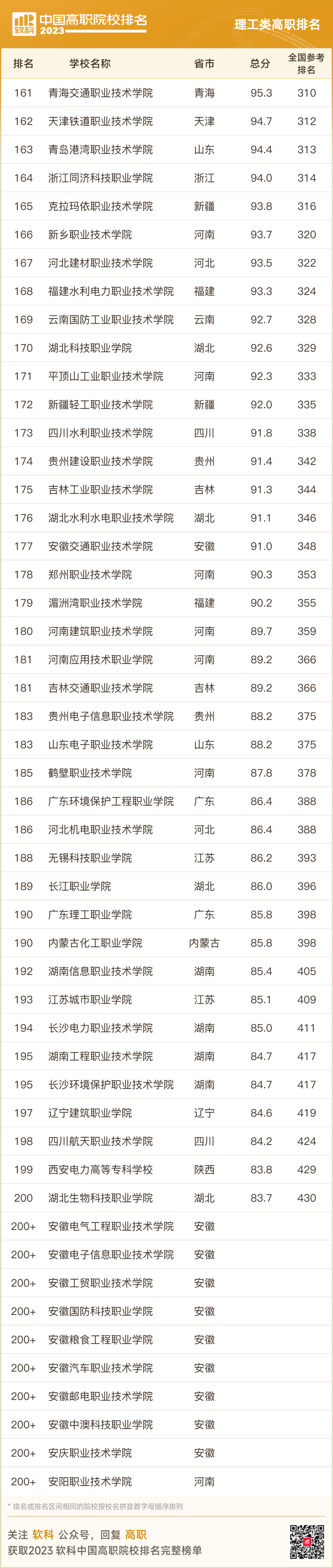 (2023年7月3日)高等教育专业评价机构软科正式发布“2023软科中国高职院校排名”。
