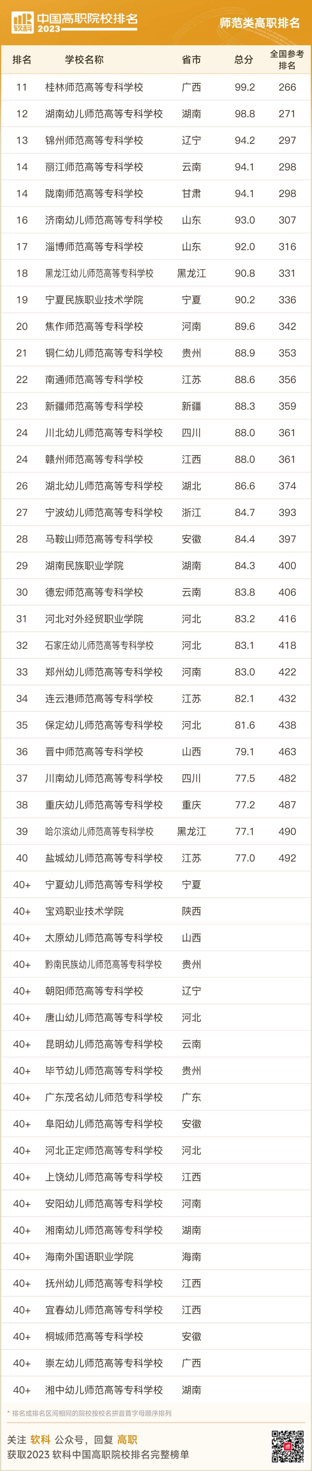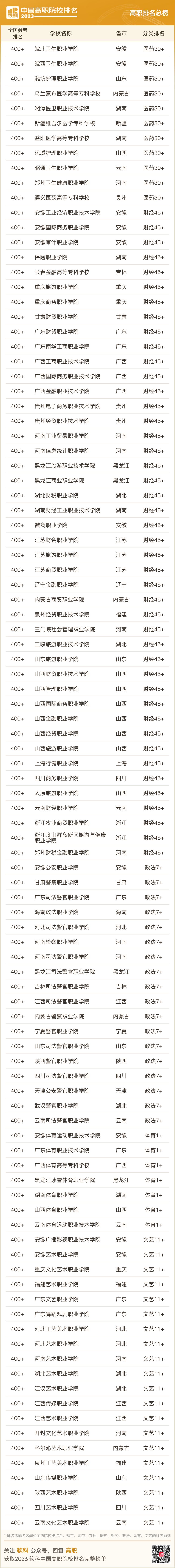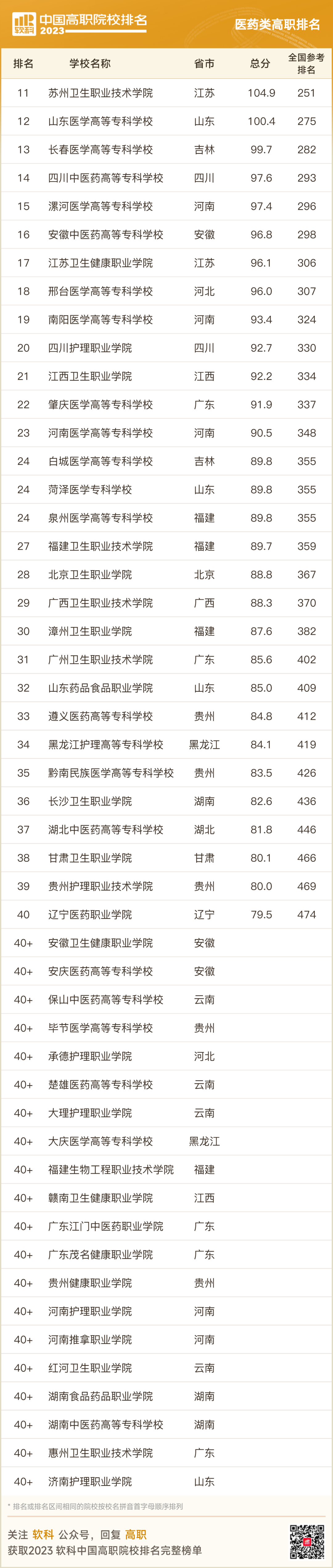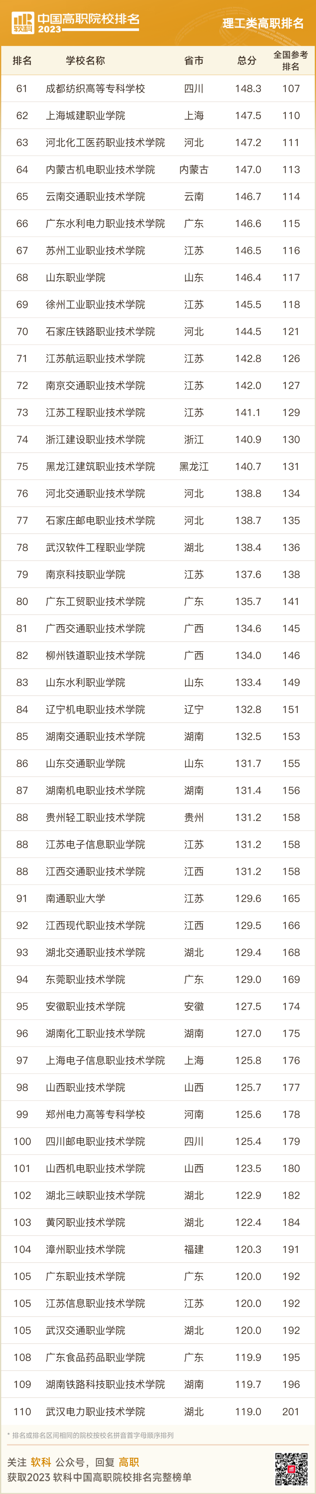 (2023年7月3日)高等教育专业评价机构软科正式发布“2023软科中国高职院校排名”。