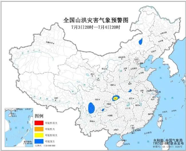 水利部和中国气象局7月3日18时联合发布橙色山洪灾害气象预警