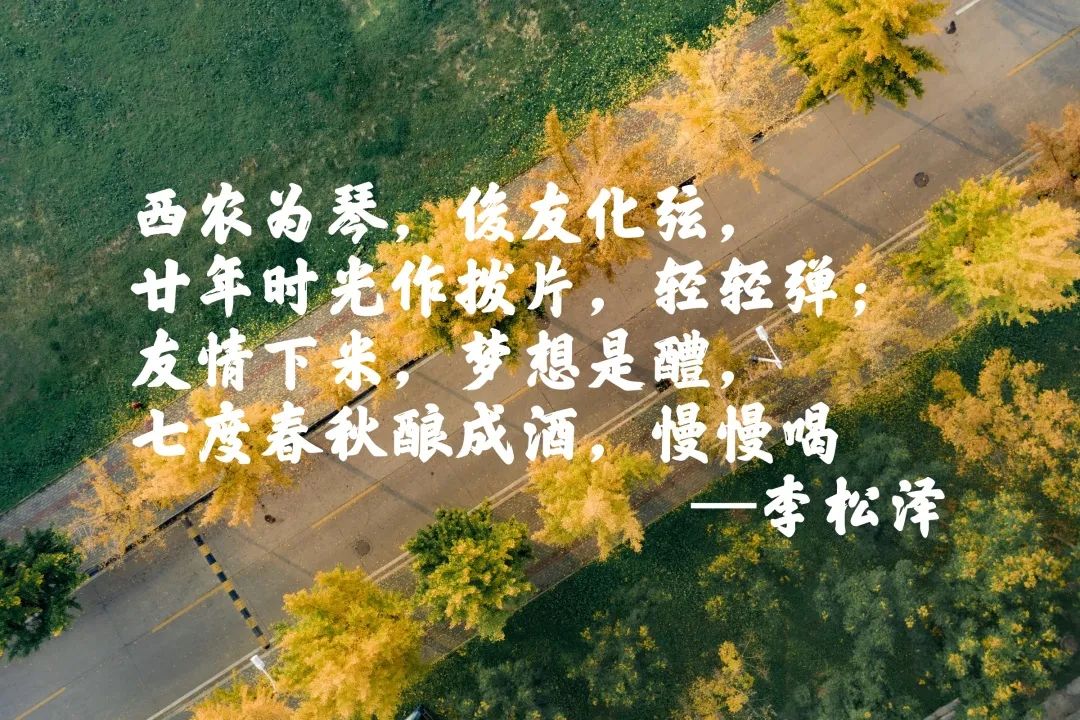 如果我能预知到这条路上的陷阱,我想我依然错的很过瘾。感谢我的朋友们一直以来的陪伴,有人鹤立鸡群,有人志存高远,有人一叶苇航,有人成家立业,世界是个圆圈,转弯我们总会遇见。你我青春各异,却都丰富多彩,个性张扬,你我都将在各自舞台,崭露头角。我将我们在西农看到的夕阳和清风完璧归赵,我将我们的理想讲给了皓月和群星。晓风残月时,希望你们可以为我舒颜,我会继续与你们在山高云远下结伴同行。芳草菁菁,细闻你我悲喜;玮态熠熠,铭记梦中抱负。西农为琴,俊友化弦,廿年时光作拨片,轻轻弹;友情下米,梦想是醴,七度春秋酿成酒,慢慢喝。