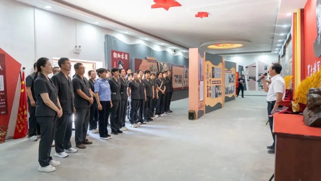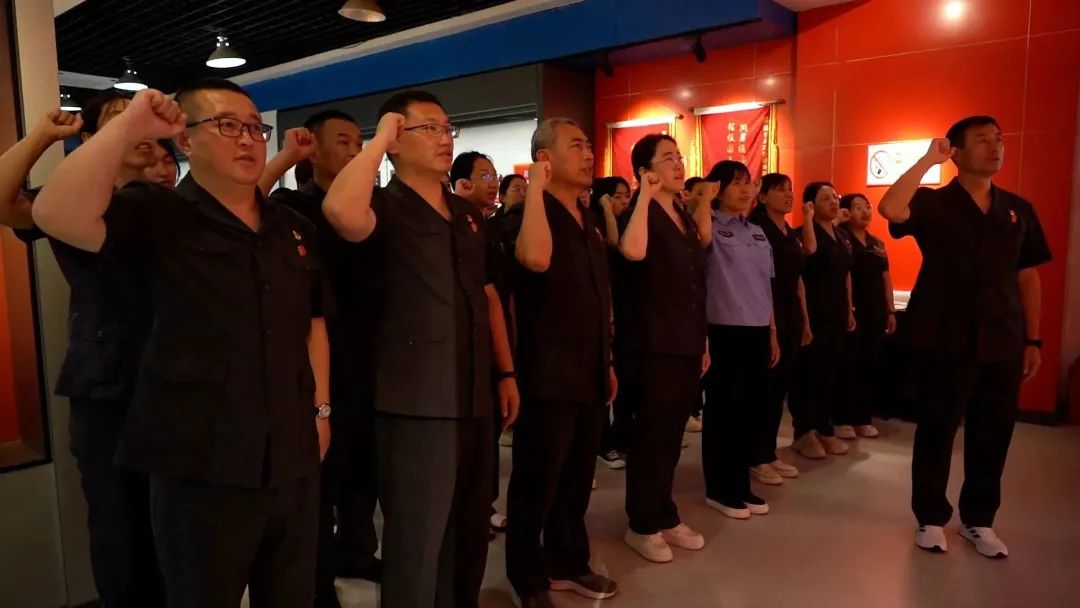 在建平县博物馆,党员干警们先后参观了陈镜湖纪念馆与辽代文物精品展。在陈镜湖纪念馆,党员干警们怀着崇敬的心情,在讲解员的带领下了解了辽宁第一位共产党员——陈镜湖的英勇事迹,缅怀其为革命奋斗的一生。在这期间,党员干警们不时在一件件革命文物前驻足停留,感受文物中的红色印记,坚定党员的初心使命。随后,在陈镜湖烈士肖像前、在鲜红的党旗下,全体党员干警举起右手、庄严宣誓,以坚定有力的誓言表达着永远跟党走的信念和决心。
