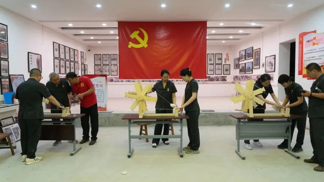 在“延安纺车”项目中,党员干警们分组进行木制手摇纺车的制作,从零部件制作到组装、从学习纺线到小组比赛,手中的一根根纺线仿佛将干警们带回了那段“劳动最光荣”的峥嵘岁月,党员干警们也在手工劳动中体会和传承了红色革命精神,进一步坚定理想信念,延续红色血脉。左右滑动查看更多