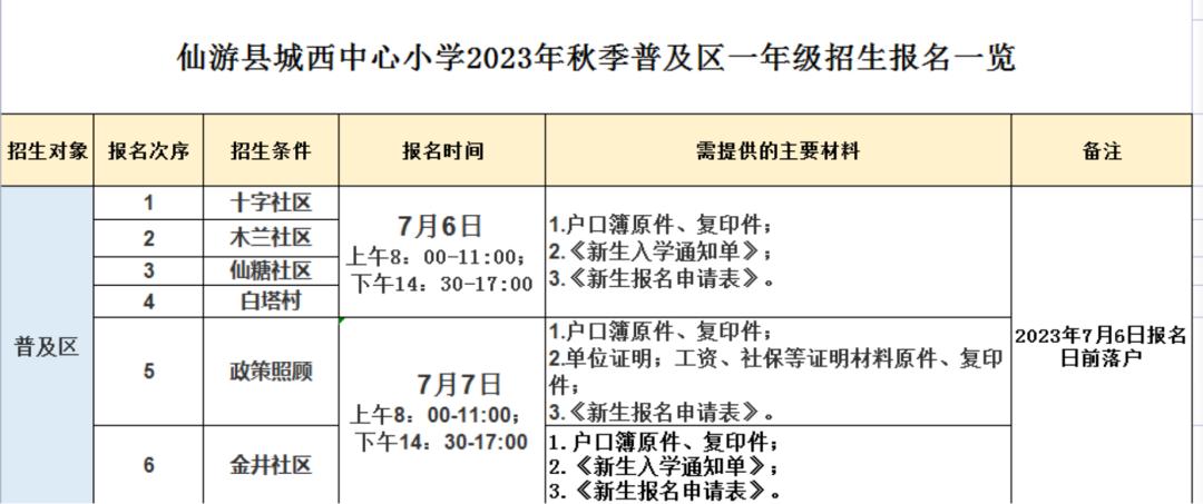 (1)在2023年7月6日报名日前落户鲤城街道十字社区、木兰社区、仙糖社区、白塔村的适龄儿童。