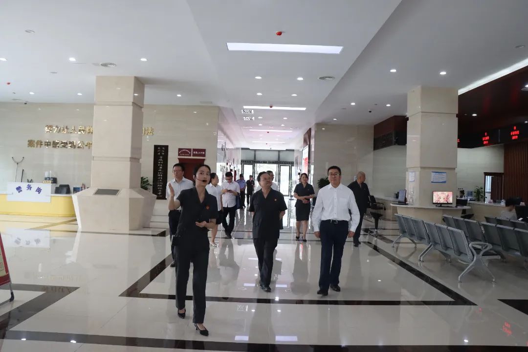 杨光明院长一行实地参观了东兴区法院诉讼服务大厅、执行事务中心、信访接待室、矛盾纠纷多元化解协调中心、“雷昌根调解工作室”、多功能调解室等场所,充分了解东兴区法院诉讼服务一站式服务流程和智慧法院建设情况。参观结束后,双方进行座谈交流。