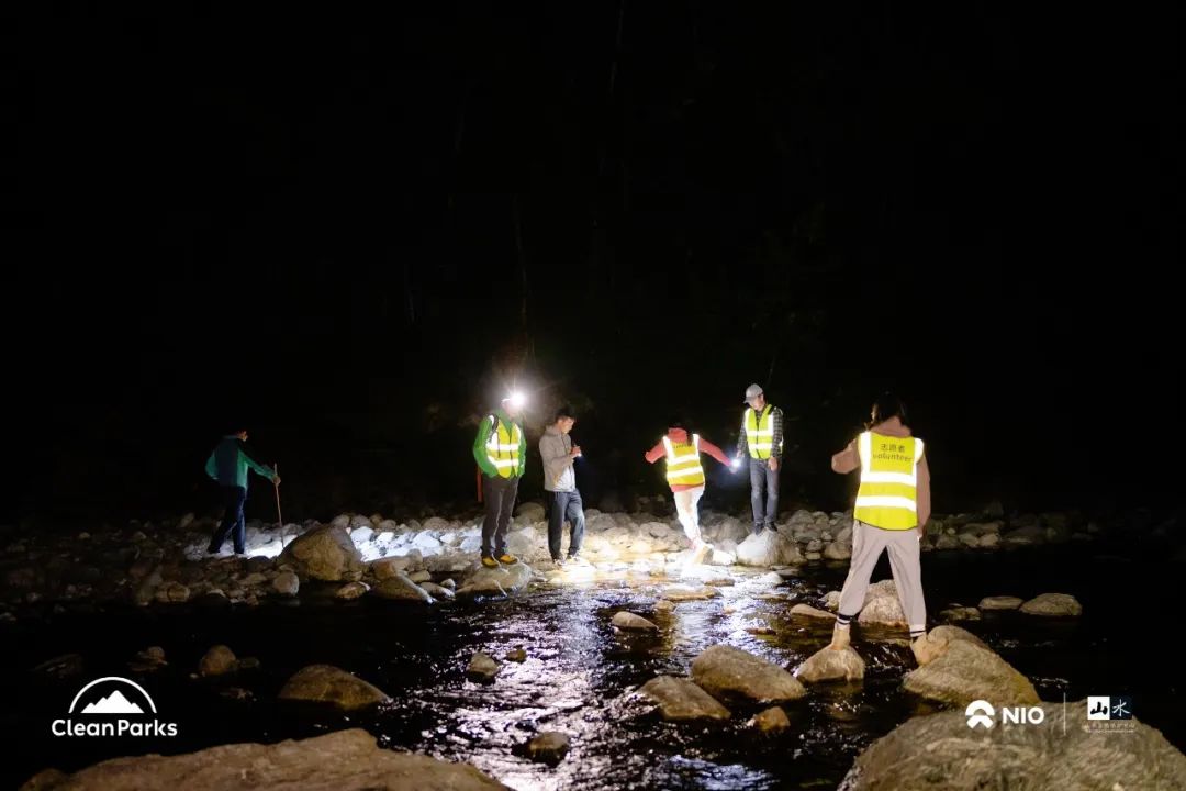 开幕仪式剪影夜晚,领好装备,我跟着向导、工作人员以及其他志愿者沿着样线预调查。预调查为的是熟悉调查内容,方便后续安全有序地进行野外活动。刚出集合点,还没走出五十米,一行人就有幸与文县瑶螈相遇。于是,在工作人员的指导下,志愿者们实操起调查设备来。