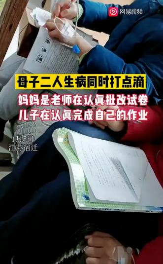 好的父母从来不刻意卷孩子,而是以身作则,让自己成为孩子的榜样。就像这对在医院一起打点滴的母子。
