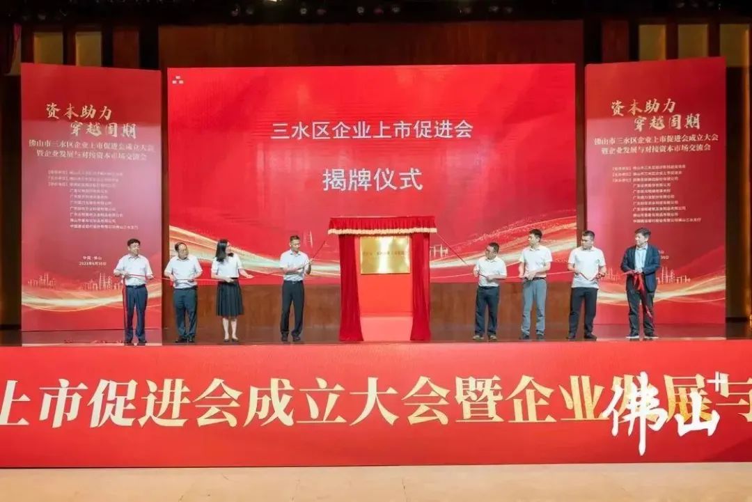 2023年6月30日,三水区企业上市促进会正式揭牌。佛山市新闻传媒中心记者李国珩摄这场大会释放出三水以资本赋能实体经济、推动高质量发展的强烈信号:面对长期向好的发展大势,手握前所未有的发展机遇以及去年顺利完成倍增任务的良好势头,三水主动自我加压,提出上市企业“再倍增”的目标,多措并举为企业驰骋资本市场护航添翼,让资本市场的“三水军团”成为再造一个产业新三水的领跑者、生力军。