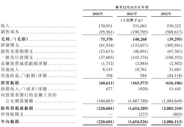营收规模扩大,主要得益于激光雷达核心产品卖得好。报告期内,速腾聚创分别出售激光雷达7200台、16300台、57000台,来自产品销售的收入分别为1.3亿元、2.29亿元、3.99亿元,分别占总收入的76.2%、69.2%、75.3%。不过,速腾聚创至今仍处于亏损状态,报告期内,公司年度亏损分别为2.206亿元、16.545亿元、20.861亿元,三年累计亏损39.612亿元;同期,公司经调整净亏损分别为5993.4万元、1.076亿元、5.628亿元。