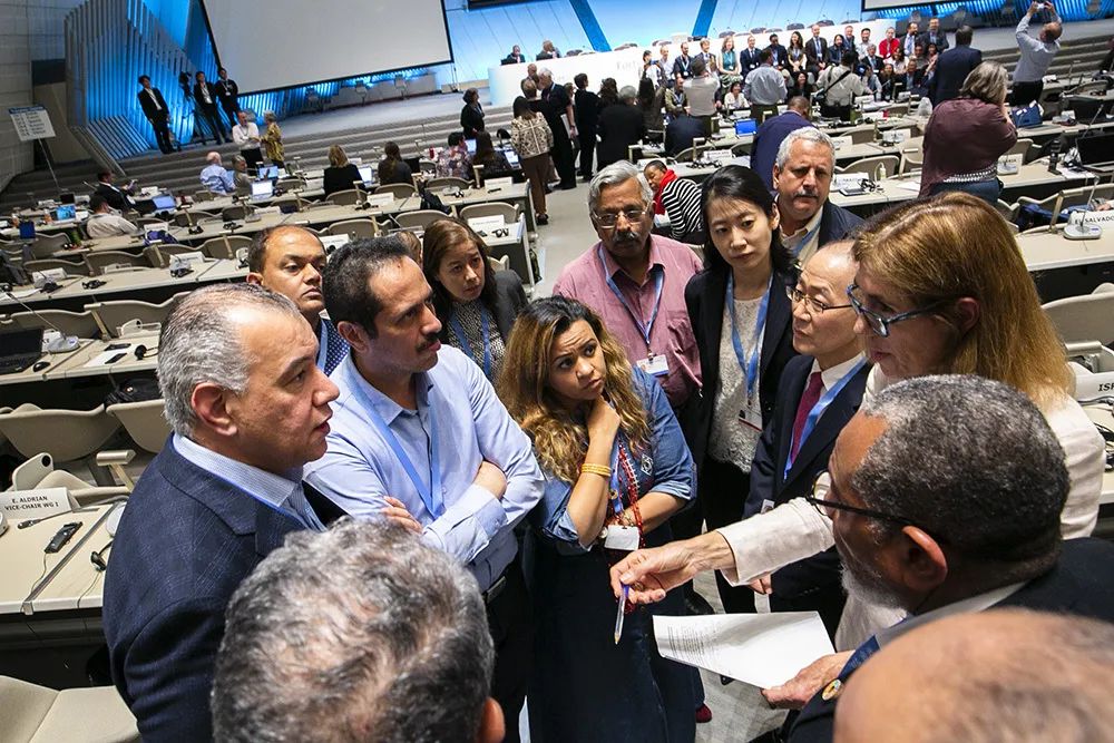 IPCC的会议通常伴随着高强度的工作和激烈的讨论。图为2019年IPCC第四十九届会议期间,气象专家进行磋商 图/IPCC官网