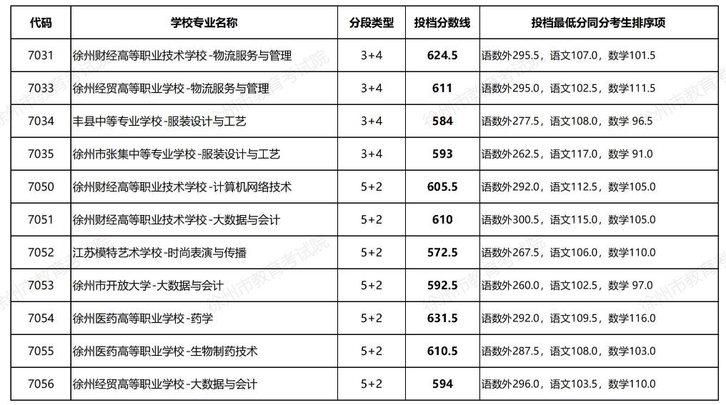 徐州市教育局发布2023年中职-本科3+4、高职本科5+2分段培养专业投档分数线,赶快一起来看看。
