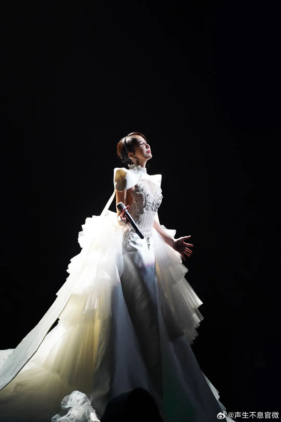 CoCo李玟身着白色婚纱演唱《天若有情》。(图/@声生不息微博)在刚出道接受采访时,李玟曾将自己爱笑,归结于她是家中老幺——“出门时,妈妈总叮嘱我年纪小,不要多说话,笑就可以”。
