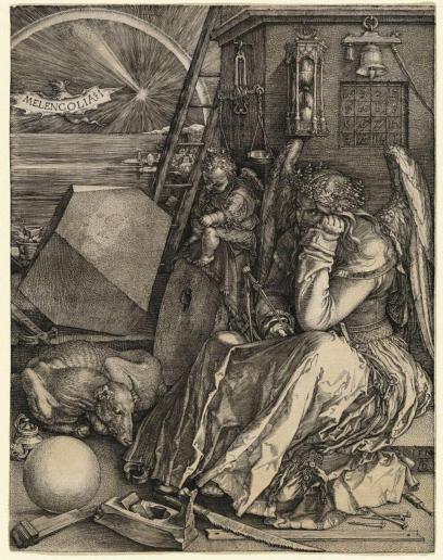 图2. 德国艺术家丢勒创作于1514年的人物版画名作:《忧郁的我》(Melencolia I)