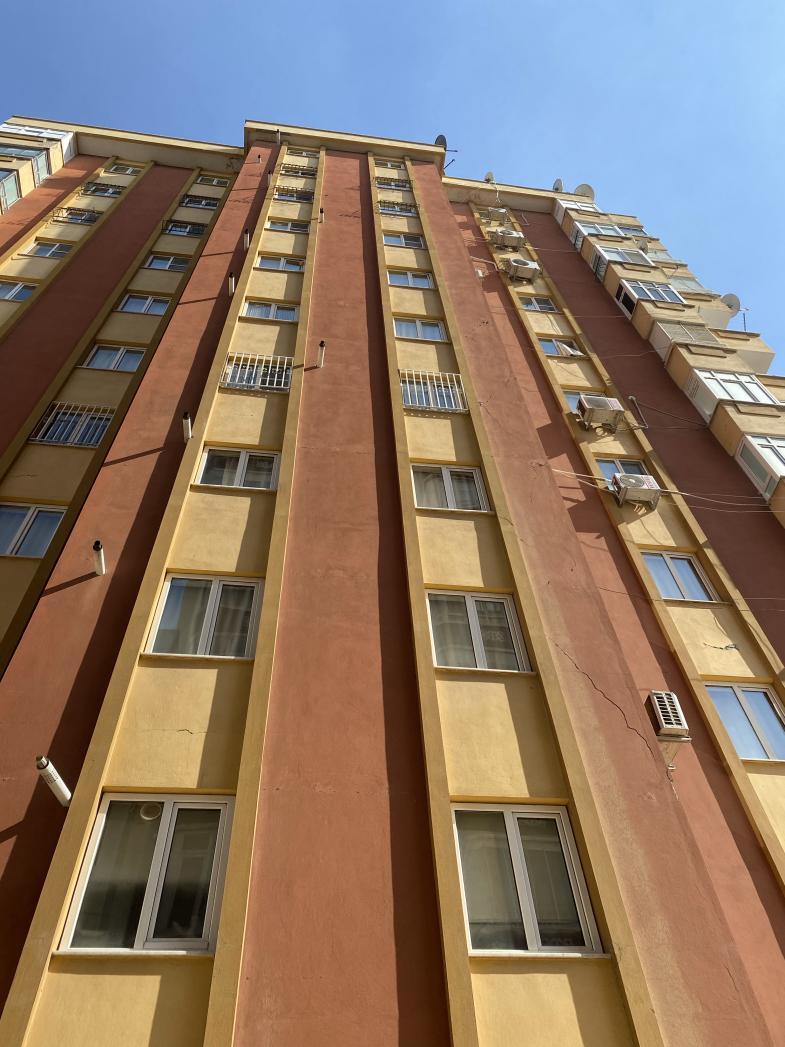 楼体已出现裂缝在跟土耳其朋友交流过程当中,我了解到为什么这一栋可以获得他和他家人的信任,因为这是土耳其特有的一种住房开发模式——熟人共同建造住房,你有管道,我有沙土,他来负责建设,建设好后给提供资源的人每人两套房。因为是熟人提供的建筑材料,所以更可能是合规的,建造的周期也很长,最重要的一点是因为开发商的家人也住在这栋楼里,所以说我朋友对这栋楼的质量非常的信任。其实这样解决住宿还是一个比较冒险的举动,因为在地震灾区最安全的地方,一定是一个开阔且平坦的地方,但是在我的朋友告诉我这栋楼的来历之后,我觉得是可以信任的,最后也把这个细节写在了稿件里。但我依旧认为在以后的国际报道,尤其是灾难报道当中,这个行为是不鼓励大家去模仿的,当时我们是别无选择。