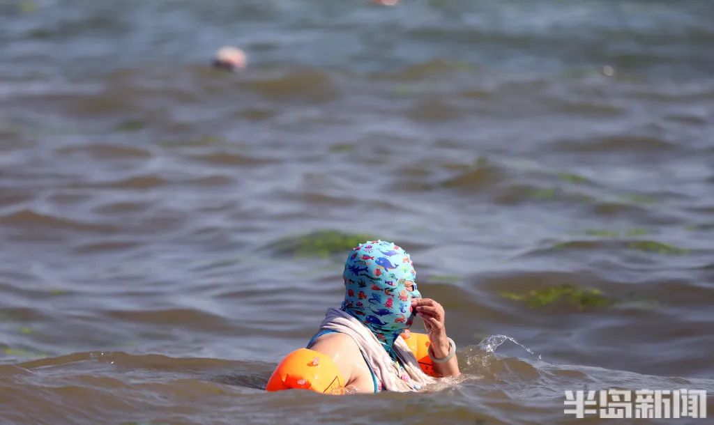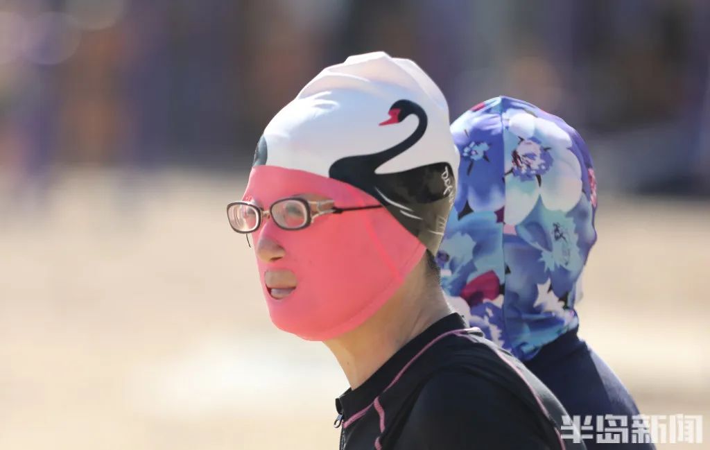 每年夏天,青岛海滩上的脸基尼大妈们总是惹人注目。7月5日,记者在一浴沙滩上,向茫茫的人群望去,总会看见一些戴着脸基尼面罩的大妈,她们做好热身运动后,准备下海游泳。脸基尼作为青岛海滨浴场的特色,不仅可以防晒,还能预防海蜇,深受一些本地人和游客们的喜爱。