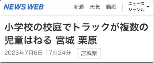 据日本广播协会报道,6日在宫城县栗原市一小学校园内,一辆卡车撞击多名儿童,多人被送至医院救治。