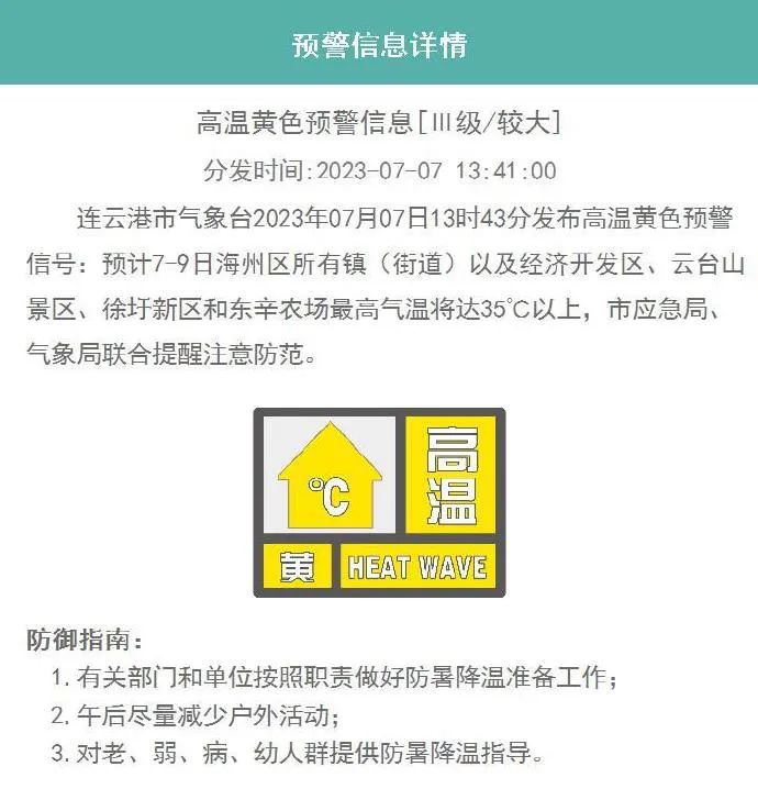 预计7日-9日海州区所有镇(街道)以及经济开发区、云台山景区