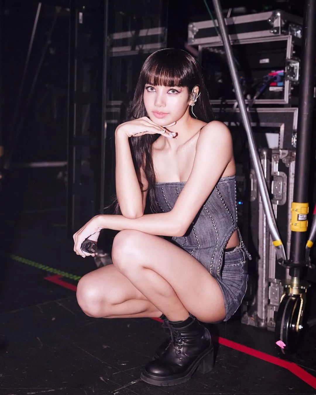 Lisa 一身直筒版型吊带极尽奢华,而牛仔面料能够最大化展示出它的优良裁剪,腰部线条流畅比挺,铆钉元素在强化吊带存在感的同时也更加衬托气场,让人瞬间高贵。百搭裙子