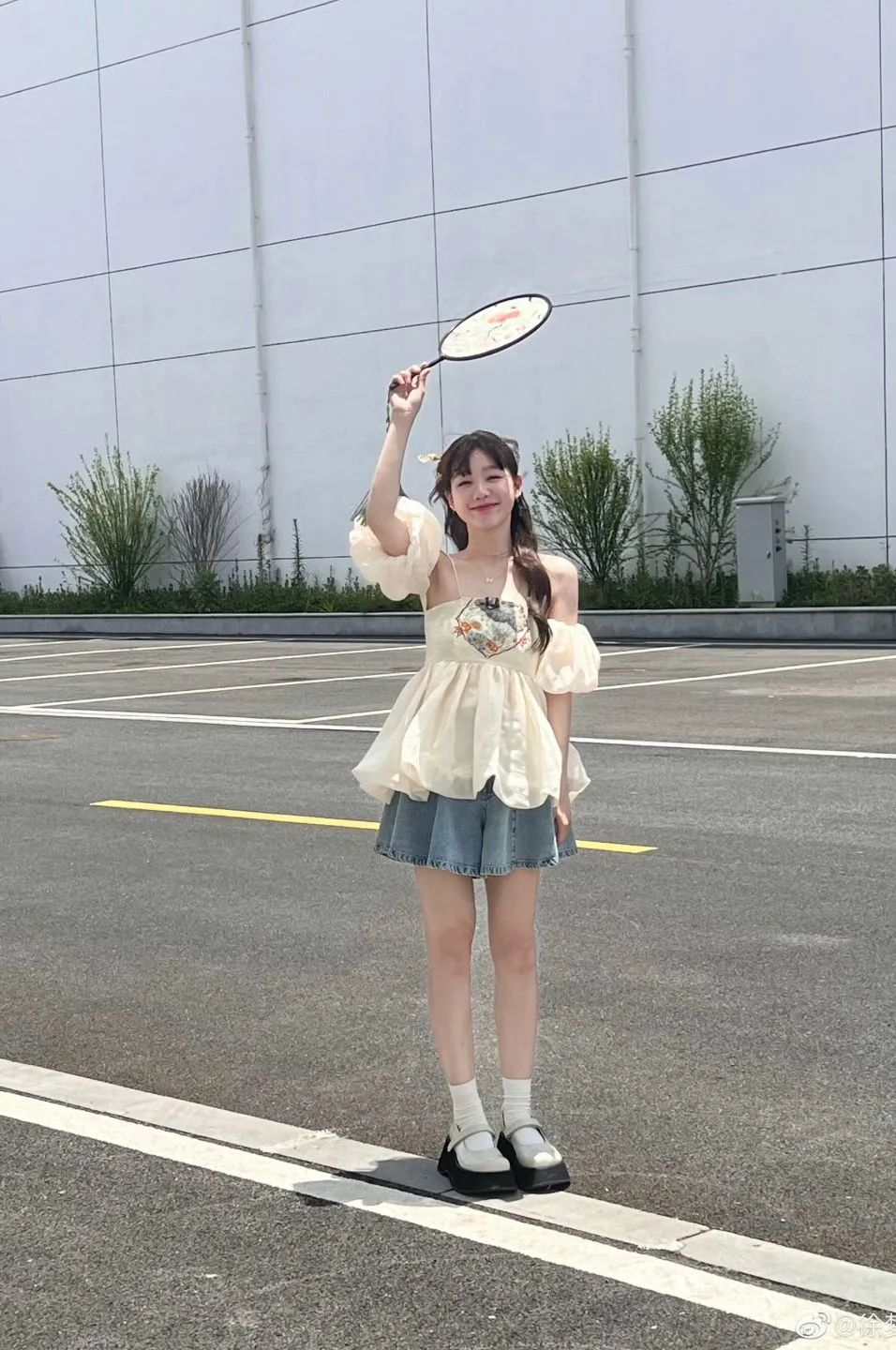 赵露思的Glamorous吊带牛仔上衣清新俏皮,吊带设计衬托出她纤细肩颈和手臂线条,刻意做旧的浅蓝色则令她更显年轻活力,百褶裙又增添了几分夏日轻盈,各种元素叠加一起,无一不在彰显牛仔的多元魅力。周洁琼