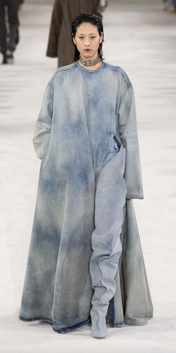Y/Project Fall 2023 Ready-to-Wear褶皱和扭曲的形状让牛仔技术得到充分展示,不对称的随意线条层层堆叠,波浪纹理增加着整体优雅的律动感,品牌以更具有辨识度的想法写意在服装上,诠释精致结构主义。