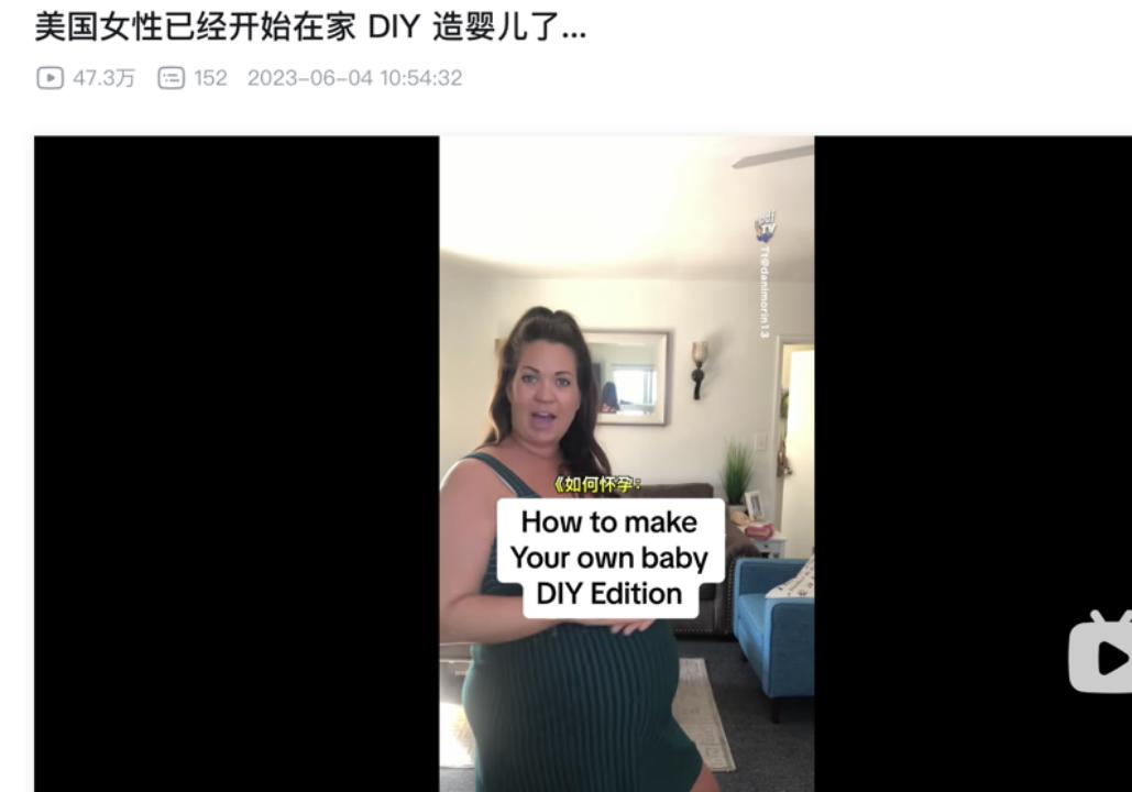是的,你没听错,这则视频的主题就叫做《美国女性已经在家DIY造婴儿了…》。