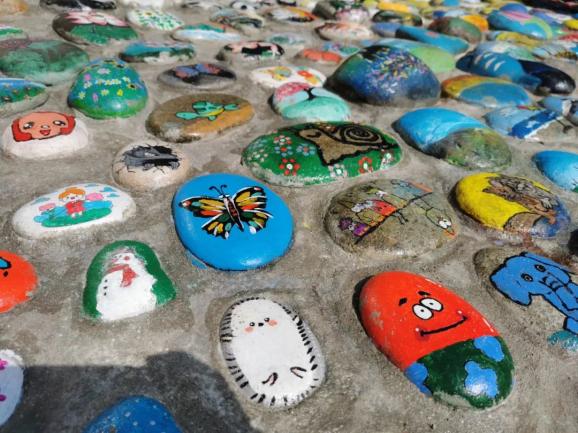 云南思茅第一小学学生张添羽说:“书声朗朗,绿意盎然,这是我理想中的绿美校园的模样,我们的学校正是这样一所学校,在这样的环境里学习我感觉很幸福。”除了“拼多多”植物角,校园里还设置了手绘石头画展区。国风、山水画、卡通形象……老师和学生们根据石头的形状和特征进行想象和创作,用天马行空的想象力和无穷的创造力,给这些普普通通的石头注入了灵魂,赋予了生命,美化了环境。
