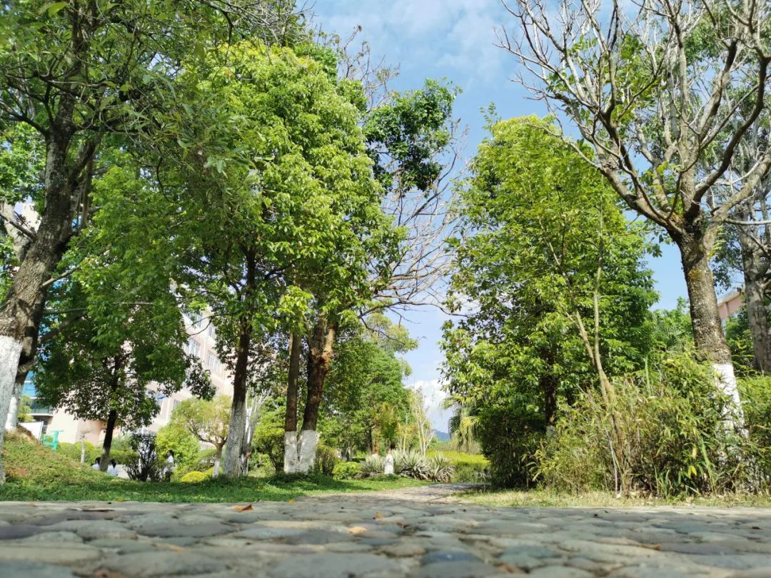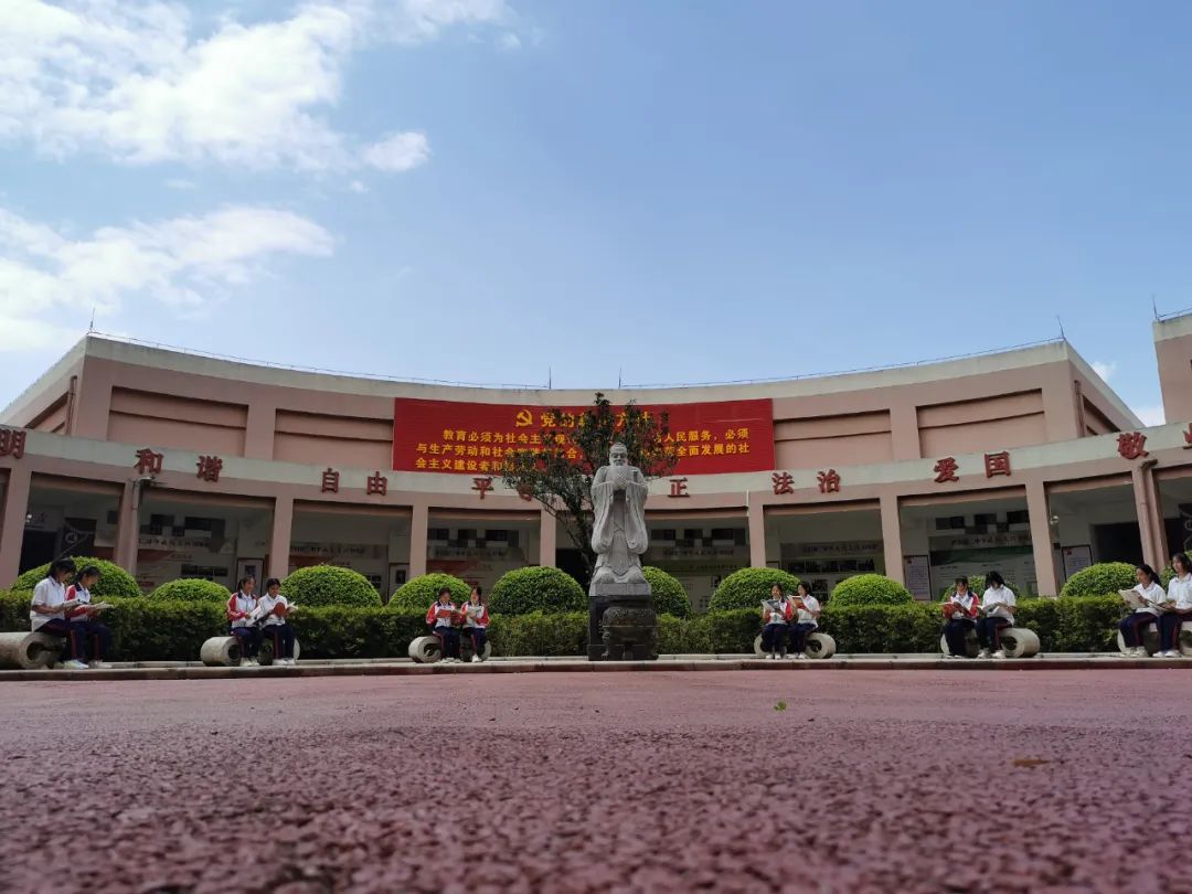 走进普洱二中,目之所及皆是绿色,各种草木竞相生长,充满勃勃生机。在树林里,传来了阵阵读书声,同学们正在树荫下三五成群地认真学习。