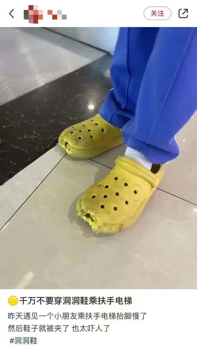 洞洞鞋之痛之所以要禁止穿洞洞鞋搭手扶电梯
