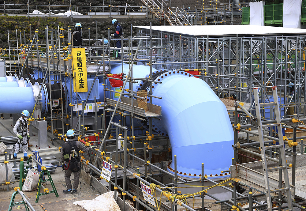 当地时间2023年5月26日,东京电力公司的福岛第一核电站里建设中的输水管道。