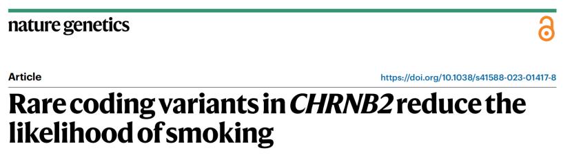 [1]Rajagopal V M, Watanabe K, Mbatchou J, et al. Rare coding variants in CHRNB2 reduce the likelihood of smoking[J]. Nature Genetics, 2023: 1-11.