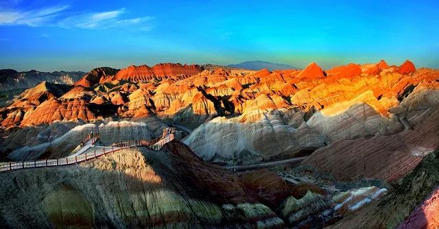 张掖七彩丹霞“一城山光,半城塔影,连片苇溪,遍地古刹。”地方志里曾经这样描述张掖美景。民间流传着“甘州不干水池塘”的谚语。据载,张掖城北之草湖滩,明清之际水丰草茂鱼多而能行舟,古称北湖,为时人旅游之地。不仅如此,巍巍祁连山绵延千里横亘张掖全境,滔滔黑河水穿越绿洲直奔内蒙古居延,冰川雪山、森林草原、绿洲沃土、湿地芦苇、七彩丹霞、峡谷湖泊、戈壁沙漠等极端地貌交相辉映,形成了鬼斧神工、风光奇绝的自然景观。