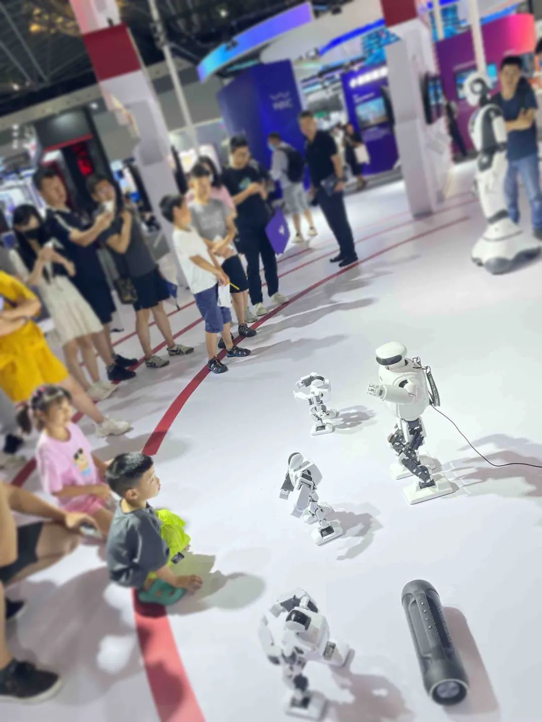 曾经登上平昌冬奥会的人形机器人公司乐聚机器人在现场的表演吸引了很多小孩子的围观。