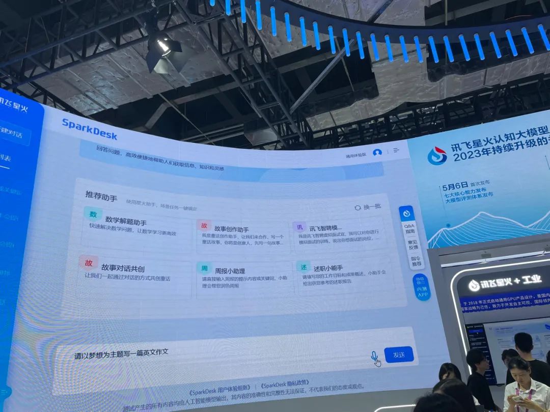展位上,互联网巨头云计算、AI公司、运营商都纷纷展示出了自己的大模型通用产品和AIGC应用产品,在百度、科大讯飞、商汤、竹间智能等公司的展位上,大家纷纷围观现场演示。