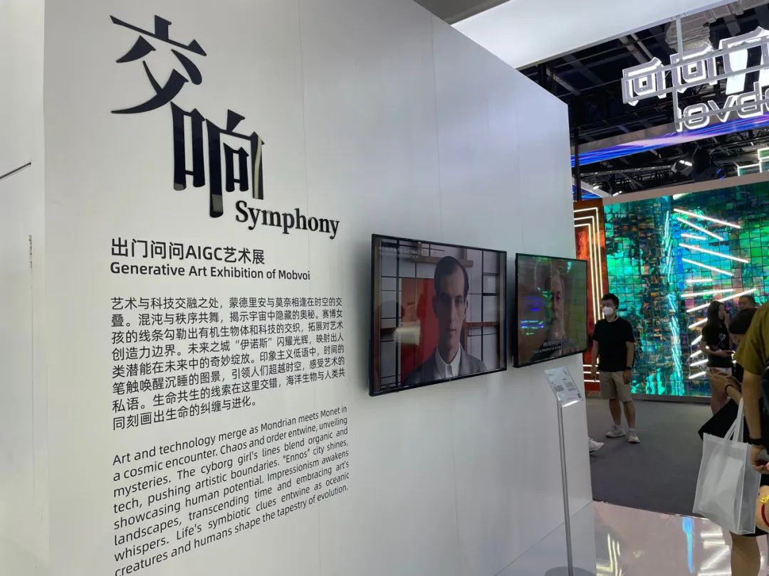 出门问问把最新的大模型“序列猴子”以及相关的AIGC产品——写作平台“奇妙文”、AI绘画平台“言之画”、AI配音平台“魔音工坊”、数字人视频与直播平台“奇妙元”带到了现场。出门问问还举办了AIGC艺术展《交响》,相关数字艺术品的作者都是其自研的AI绘画平台“言之画”。