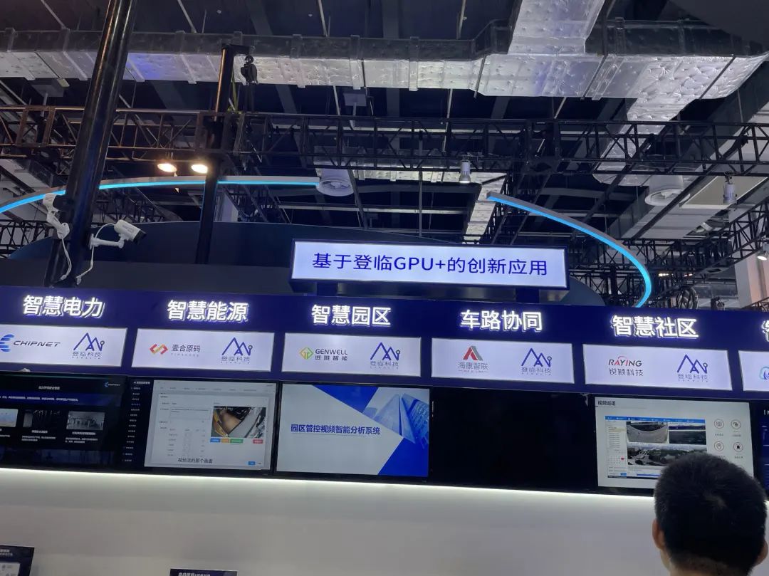 今年来的芯片公司要比去年多,大多都是AI芯片企业,展位也比之前大多了。除了硬件产品之外,可以看出,AI芯片公司也都在努力参与到这波大模型淘金热中,他们在展位上纷纷展示出自己有支撑大模型的能力,并在现场展示了很多在具体行业和场景落地的示范案例。