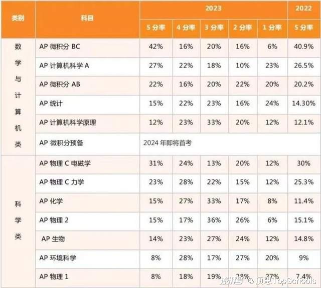 AP官网也公布了2023年AP分数情况,有自媒体整理了2023年和2022年两届考试得分情况。