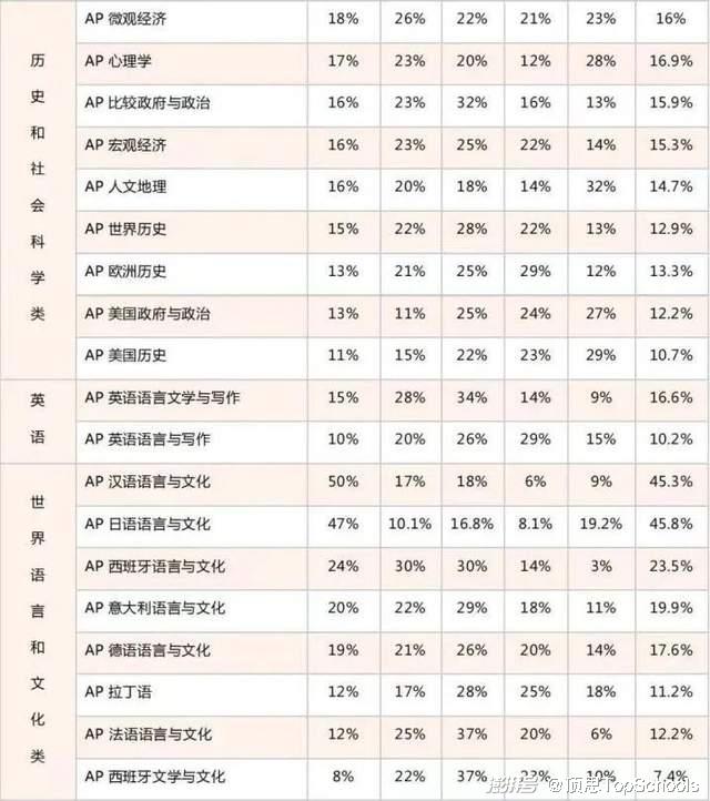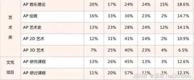 数据显示,5分率最高的科目为:汉语语言与文化(50%)、日语(47%)、微积分BC(42%)、物理C电磁学(31%)、计算机科学A(27%)。