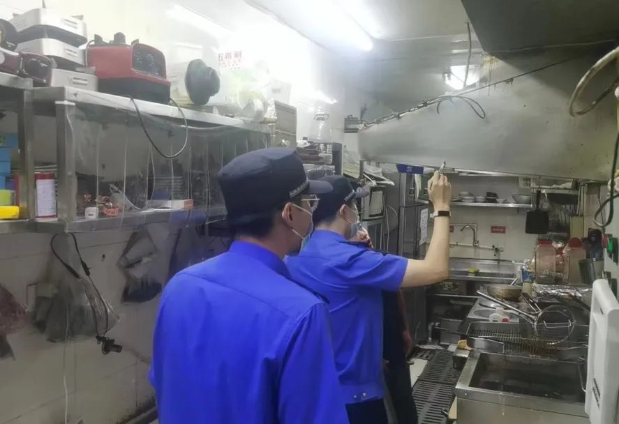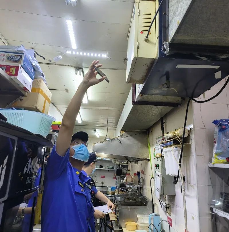 仙霞新村街道综合执法队认真梳理今年以来12345市民热线中油烟扰民投诉比较集中的餐饮商铺,对其油烟净化设备安装和使用情况开展专项执法检查。