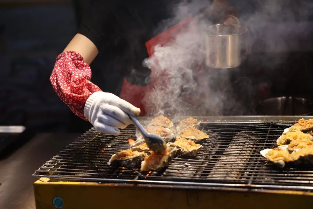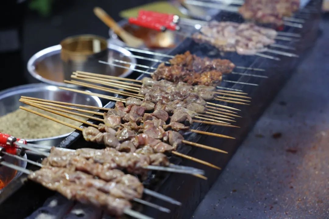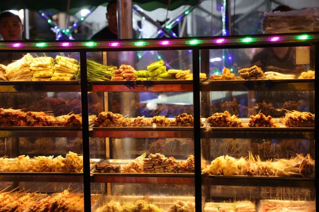 香坊夜市灯火通明,人潮涌动。这里集中了四五十家餐饮摊位,国内各地美食应有尽有。出名的网红大腰子,几乎是每个初来香坊夜市的人都要品尝一下的美味;接下来的是瓦罐烤串、一绝卷饼、铁板鱿鱼、徐记饭包、烤生蚝等,各种美食琳琅满目。滋滋冒油的烤串,蒜香味十足的生蚝,香气弥漫的鱿鱼,让人忍不住口水直流。餐饮区有主食也有副食,价格都不贵,花二三十元钱,既吃好又吃饱。