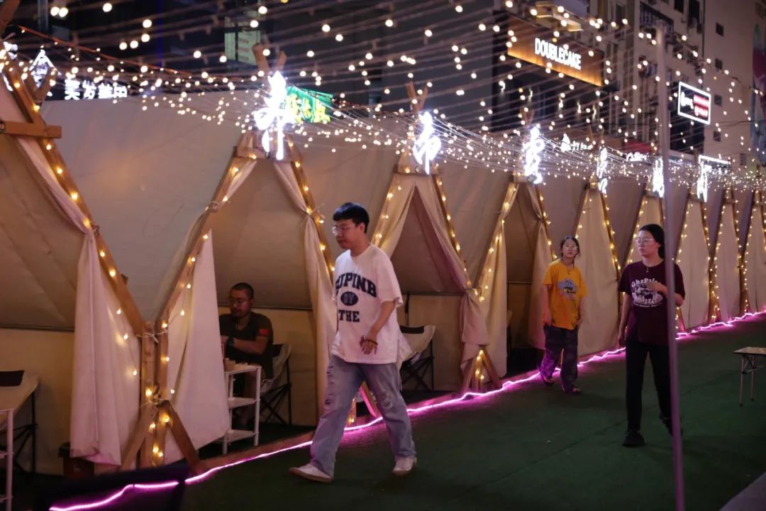 主办方在市集里打造了露营基地,每天10时到20时进行活动,星空电影院、烛光音乐会等便民活动丰富市民夜间娱乐项目。创意露营街区,彰显出城市夜经济日益涌动的活力。