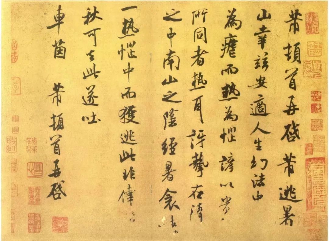 他在《逃暑帖》中写道:“芾逃暑山,幸兹安适……”大意是,米芾因逃避暑热跑到山上去,尽情享用“南山之阴”。