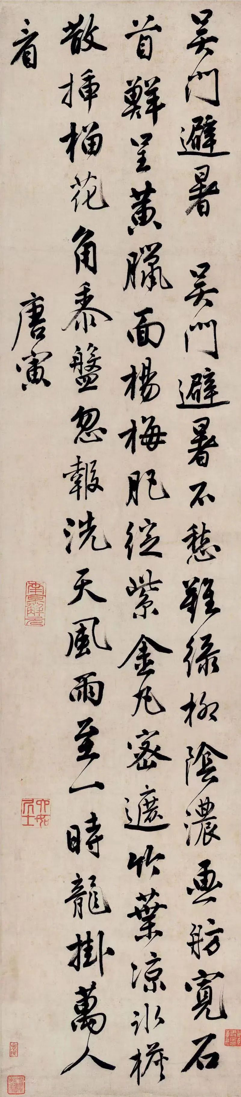 明代“吴门四家”中的文徵明、唐伯虎有很多关于避暑的创作。唐伯虎有一首《吴门避暑诗》:“吴门避暑不愁难,绿柳荫浓画舫宽。”《吴门避暑诗轴》