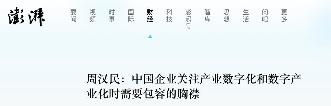 原标题:《周汉民:中国企业关注产业数字化和数字产业化时需要包容的胸襟》