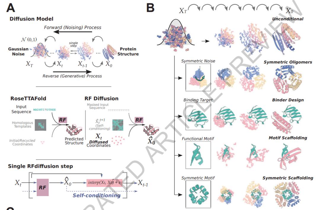 2023年7月11日,著名蛋白质设计专家、华盛顿大学医学院 David Baker 教授团队在 Nature 期刊发表了题为:De novo design of protein structure and function with RFdiffusion 的研究论文。