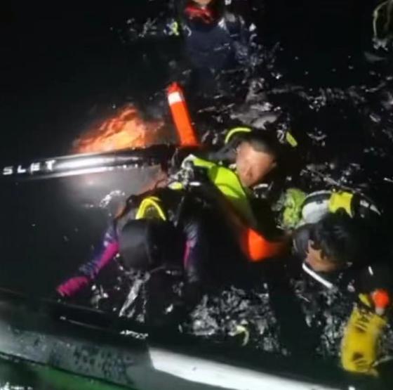 发现失联人员后正在救援(图据广东海事局)当地多位潜水人员: