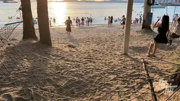 今天下午,事发海域附近双月湾海滩看日落和游泳。受访者供图